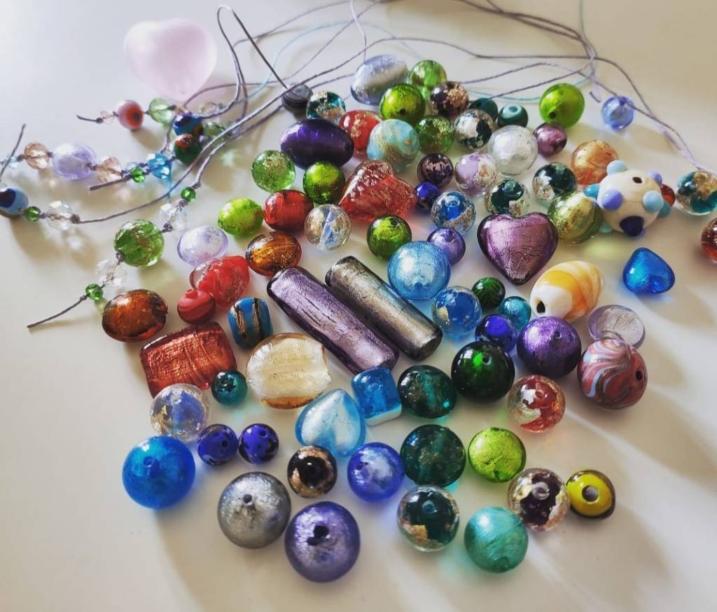 Now, I am hard at work on the second book of the Dream Trip series and am also having a great time putting together these adorable little Murano bead book charms. In the story, Skye and her father take a glass blowing class in Murano. I sent a few glass shops in Murano the spread from the book and told them what I wanted to do and two of them gave me a great deals on some GORGEOUS handmade glass beads.