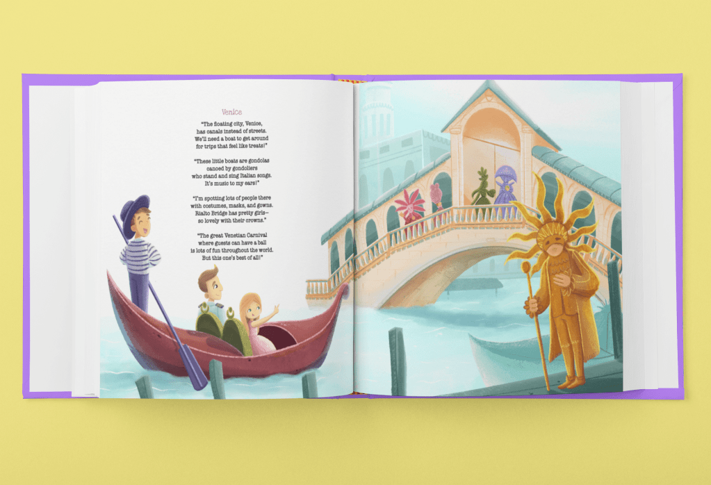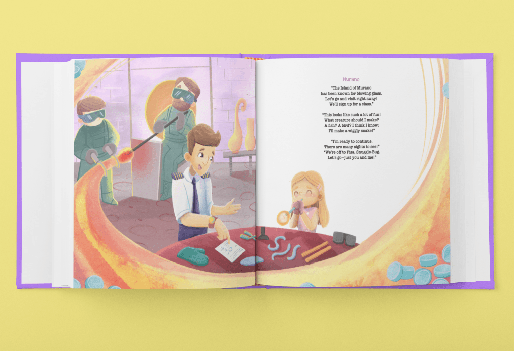 In this first book of the series, Skye and her dad, Captain Keith, fly their dream plane to Italy. They enjoy a gondola ride in Venice, discover the incredible Colosseum in Rome, taste the famous pizza of Naples, climb an active volcano in Sicily, and so much more!