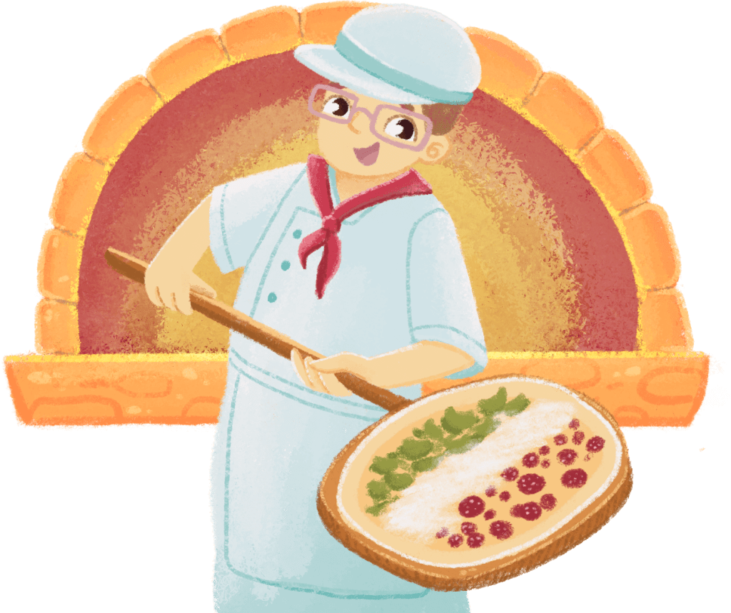 Mmm! 😋 They are enjoying a delicious margherita pizza in Naples.